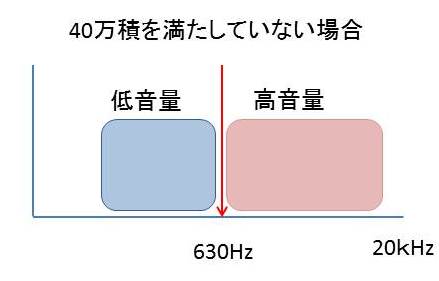 逆に40万積の法則を満たしていない場合は、低音域が切れているのに、高音だけ伸びていると高音域の量感がまさって、バランスよく聞こえないのです。この時は40万積の法則が崩れています(もっと大きな数字になる)。