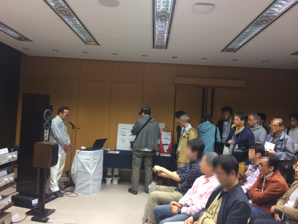この部屋の音響特性は普通で、悪くはありません。ただ定在波の影響か100Hzあたりにボンツキが感じられました。それでも昨年のAudioBaseの部屋(まるで残響室の様)よりは遥かに良かったです。