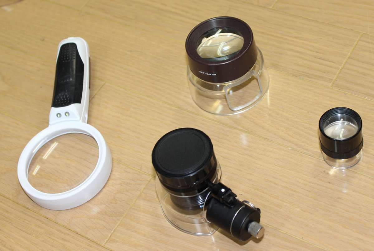 ヘッドルーペ(目を近づけないと見えないので使いづらい)