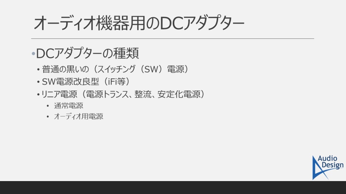 今回は、DCアダプター(直流電源)の種類と、音質に直結する性能指標について、実際の測定結果を交えて解説します。