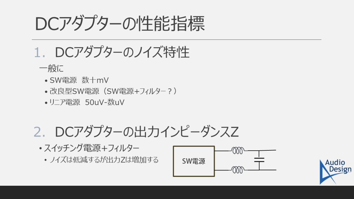 良質なDCアダプターとは「ノイズが小さい、そして出力インピーダンスが小さく供給電圧が安定しているもの」だと説明してきました。