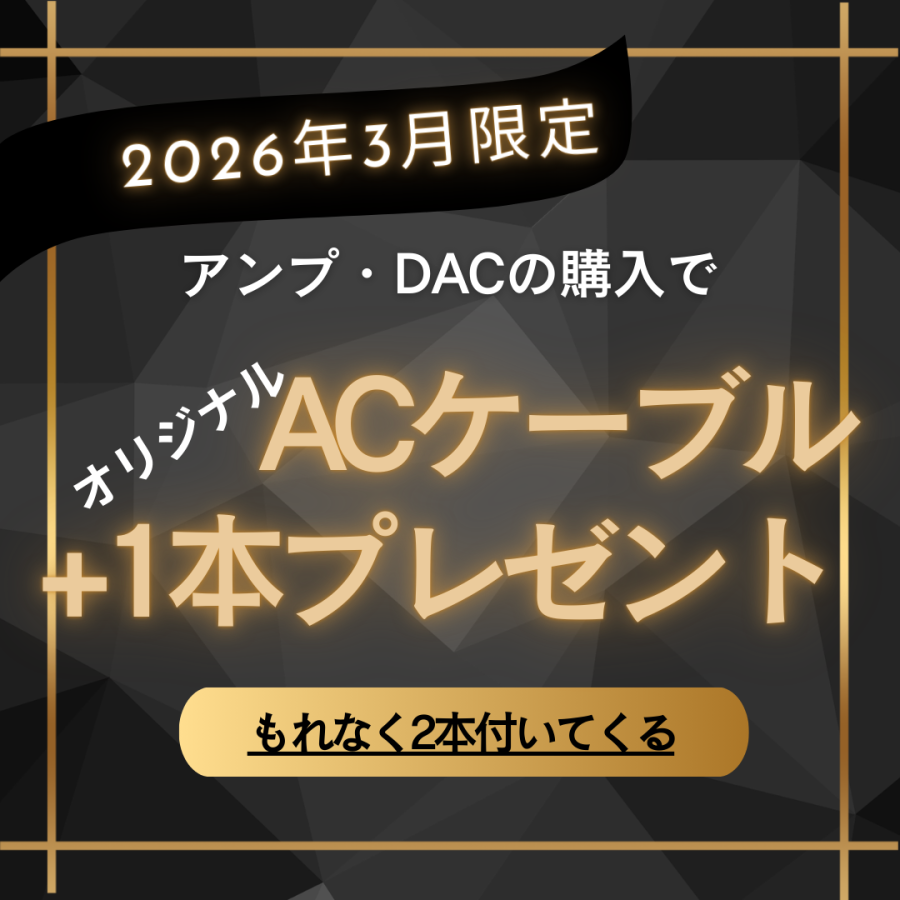 3月中にアンプ・DAC類をご購入のお客様にオリジナルACケーブルを+1本サービスさせていただきます。