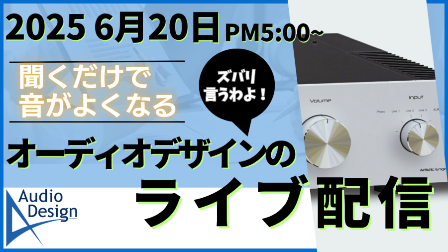 オーディオデザイン社の代表がお送りするライブ配信です。